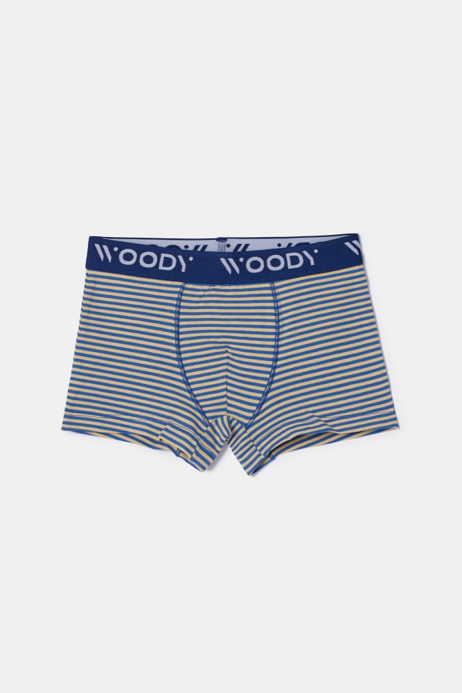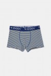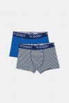 Set van twee boxershorts in stretch katoen. Een boxerhort in effen blauw en de ander met strepen. De boxershorts zijn verkrijgbaar in de maten 24m/2y-16y.