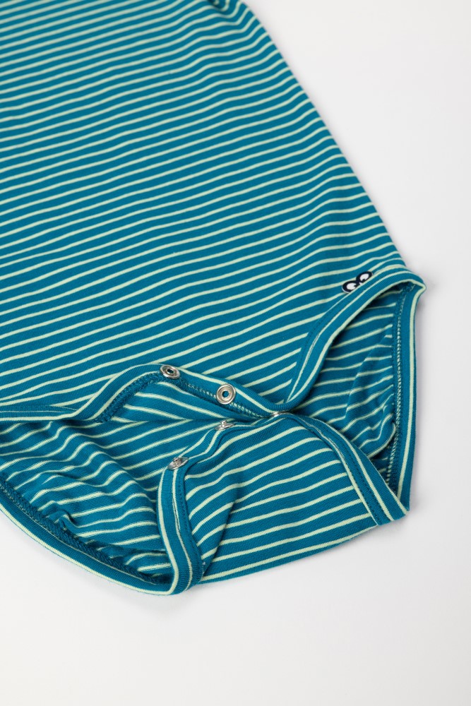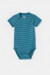 Groen gestreepte body van soepel katoen. Deze romper heeft korte mouwen en is verkrijgbaar in de maten 0m-24m/2y.