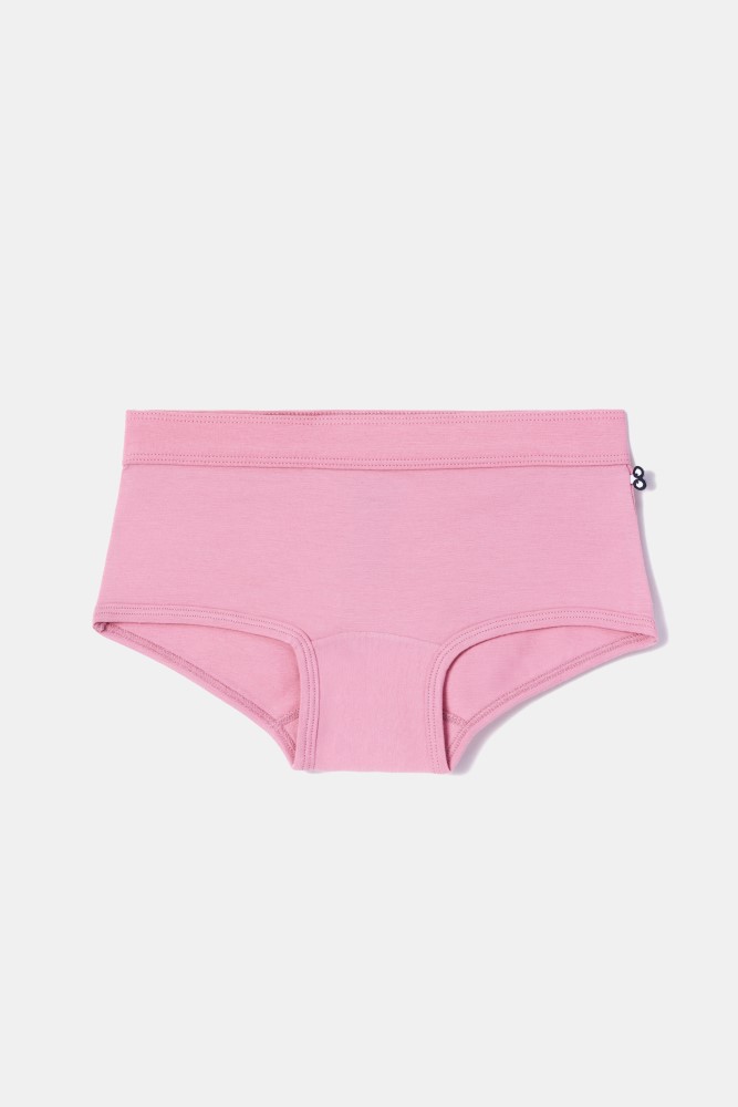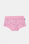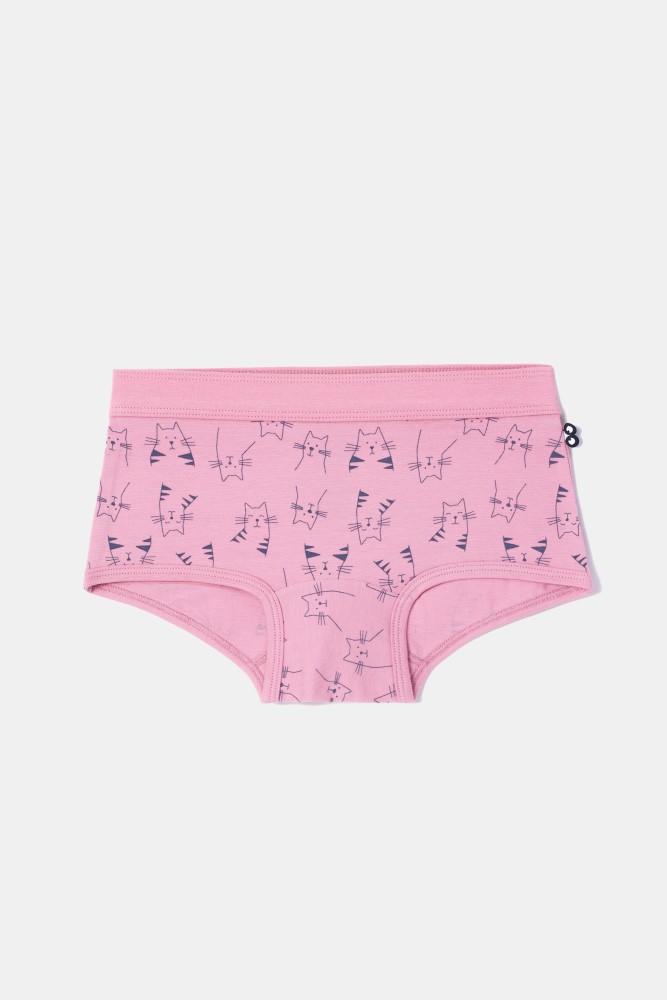 Set van twee shorty onderbroeken van stretch katoen. De 1 is effen roze, de ander is roze met een kattenprint. Verkrijgbaar in de maten 24m/2y-16y.