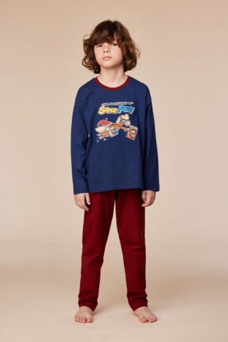 Donkerblauwe pyjama met donkerrode broek in katoen