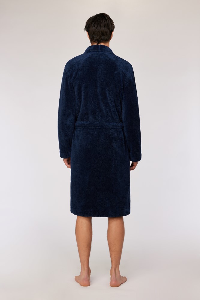 Diepblauwe kamerjas in teddystof tot onder de knie