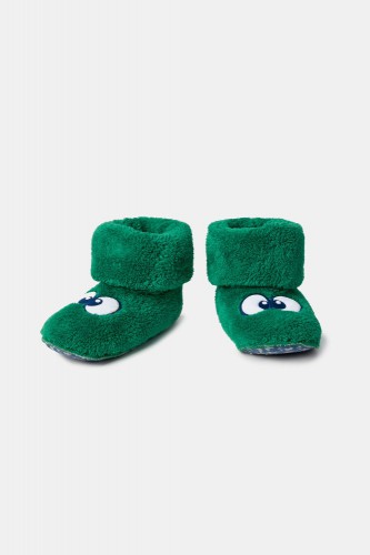 Donkergroene pantoffels met ogen