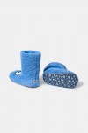 Blauwe pantoffels in teddystof met ogen. De pantoffels kunnen omgeplooid of lang gelaten worden. Verkrijgbaar in de maten 22-26 tot 43-46.