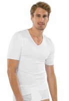 Ref: CLASSIC FEINRIPP 1xSHIRT KM V-HALS wit