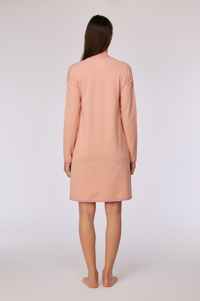 Roze-geel gestreept slaapkleedje van soepel katoen. Het slaapkleedje heeft bovenaan een print van een kat. Verkrijgbaar in de maten 24m/2y-XXL.