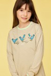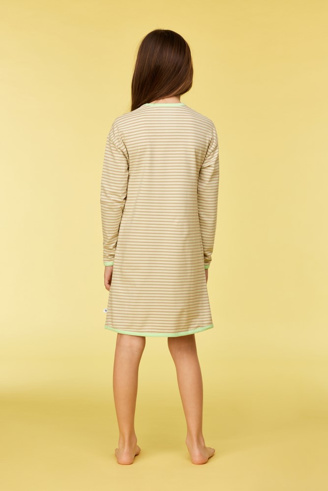 Groen-beige gestreept slaapkleedje van soepel katoen. Het slaapkleedje heeft bovenaan een print van drie duiven. Verkrijgbaar in de maten 24m/2y-XXL