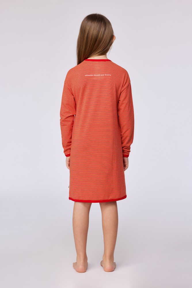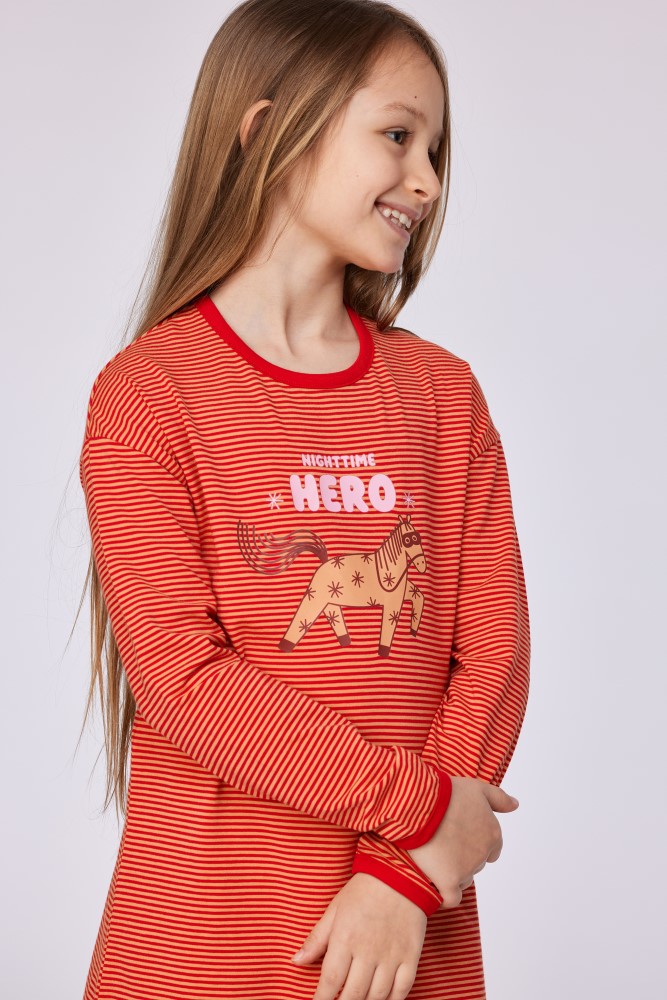 Rood gestreept slaapkleedje van soepel katoen. Het slaapkleedje heeft bovenaan een print van een pony. Verkrijgbaar in de maten 24m/2y-XXL.