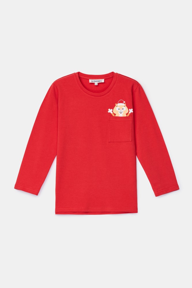 Rood-groene pyjama voor jongens en heren met bovenstuk in zacht, soepel katoen en met broek in geweven katoen, met een schotse ruit als print. Het bovenstuk heeft op het borstzakje een speelse kattenprint en is afgewerkt met een brede boord. Verkrijgbaarvan maat 4 jaar t.e.m. maat XXL, perfect om te matchen tijdens deze eindejaarsfeesten.