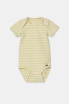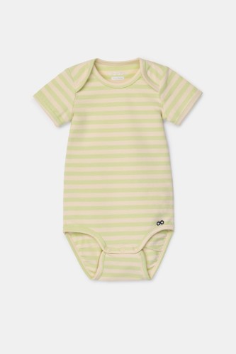 Groen gestreepte body van soepel katoen. Deze body heeft korte mouwen en is verkrijgbaar in de maten 0m-2Y.