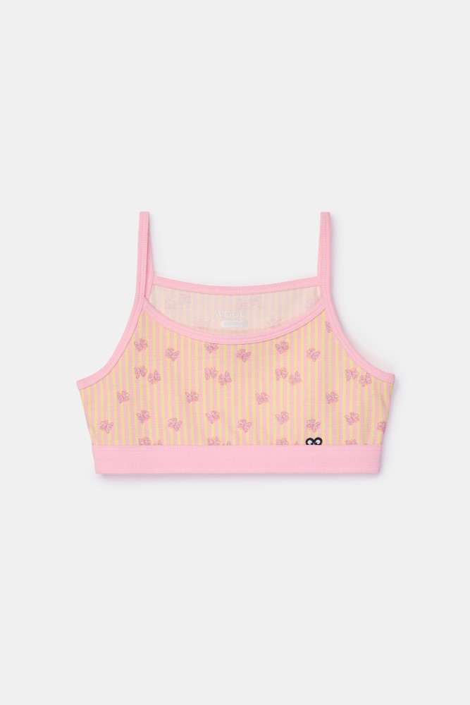 Kort topje van rekbaar katoen. Het topje heeft spaghettibandjes, is afgewerkt met een stretch boord onderaan en heeft een vlinderprint. Verkrijgbaar in maten 2Y-16Y.
