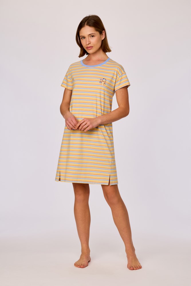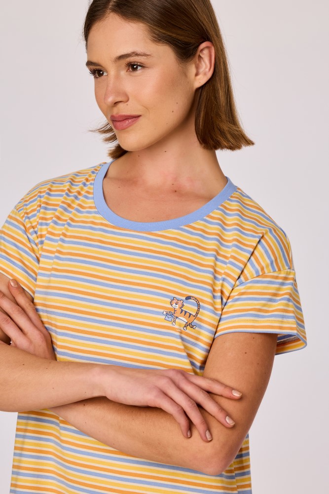Kleurrijk slaapkleed van soepel rekbaar katoen. Dit model met korte mouwen komt tot boven de knie en heeft een speelse tijgerprint. Verkrijgbaar in de maten 2Y-XXL.