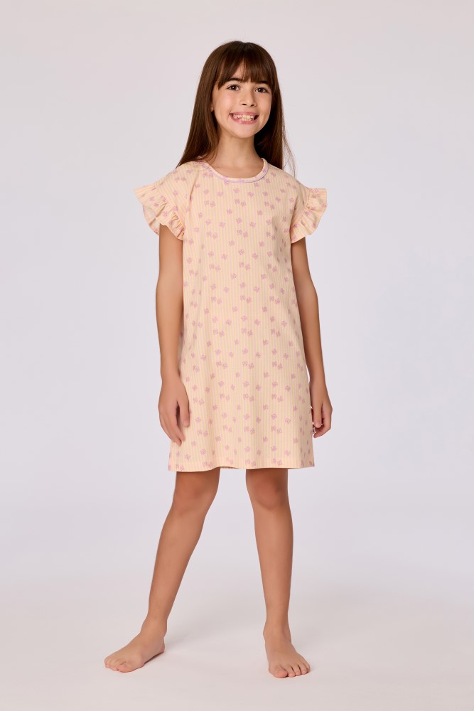 Geel-paars gestreepte slaapkleed van soepel katoen