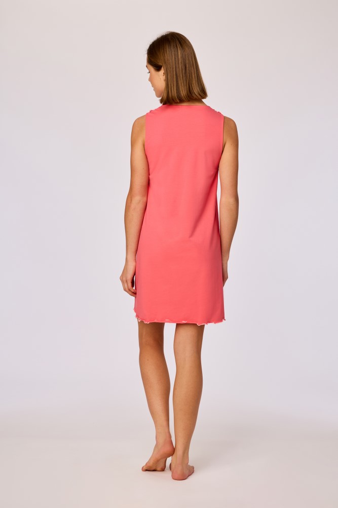 Ontdek dit effen rood-roze mouwloos slaapkleed voor dames gemaakt van soepel katoen. Dit slaapkleed heeft een comfortabele pasvorm en elegante V-hals. Verkrijgbaar in maten XS - XXL.