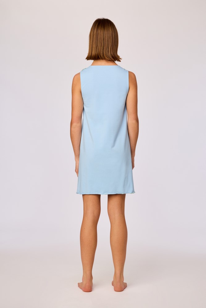 Ontdek dit effen lichtblauw mouwloos slaapkleed voor dames gemaakt van soepel katoen. Dit slaapkleed heeft een comfortabele pasvorm en elegante V-hals. Verkrijgbaar in maten XS - XXL.