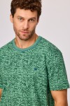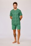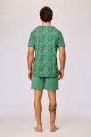 Jongens en heren pyjama bestaande uit een T-shirt en een bijpassende short van rekbaar en soepel katoen. Het T-shirt heeft korte mouwen, een ronde hals met contrasterende boord en een all over patroon van palmbomen in groentinten. Op de borst is een klein geborduurd logo aangebracht. De short is uitgevoerd in effen groen en heeft een elastische tailleband met een aantrekkoord en een rechte pijn.