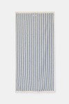 Blauw-wit gestreepte zwemzak van badstof met handdoek
