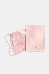 Roze-wit gestreepte zwemzak van badstof met handdoek