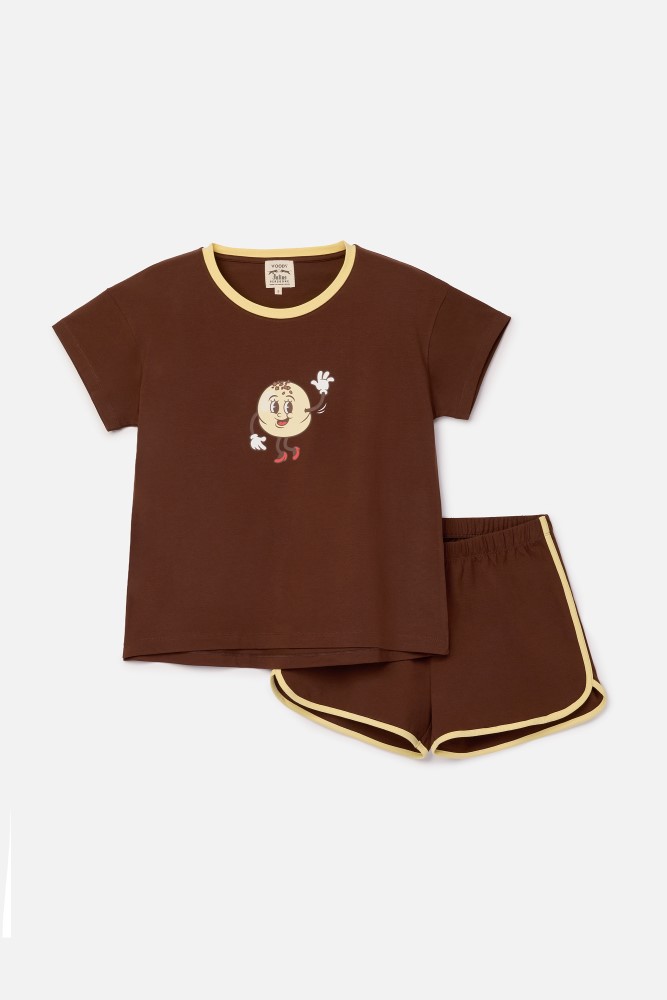 Woody en chocolatier Julius Persoone slaan de handen in elkaar voor een collectie die barst van karakter en creativiteit. Beiden delen we een ontembare passie voor vakmanschap en de durf om net dat tikkeltje anders te zijn. Deze bruine dames pyjama is door Julius zelf ontworpen.